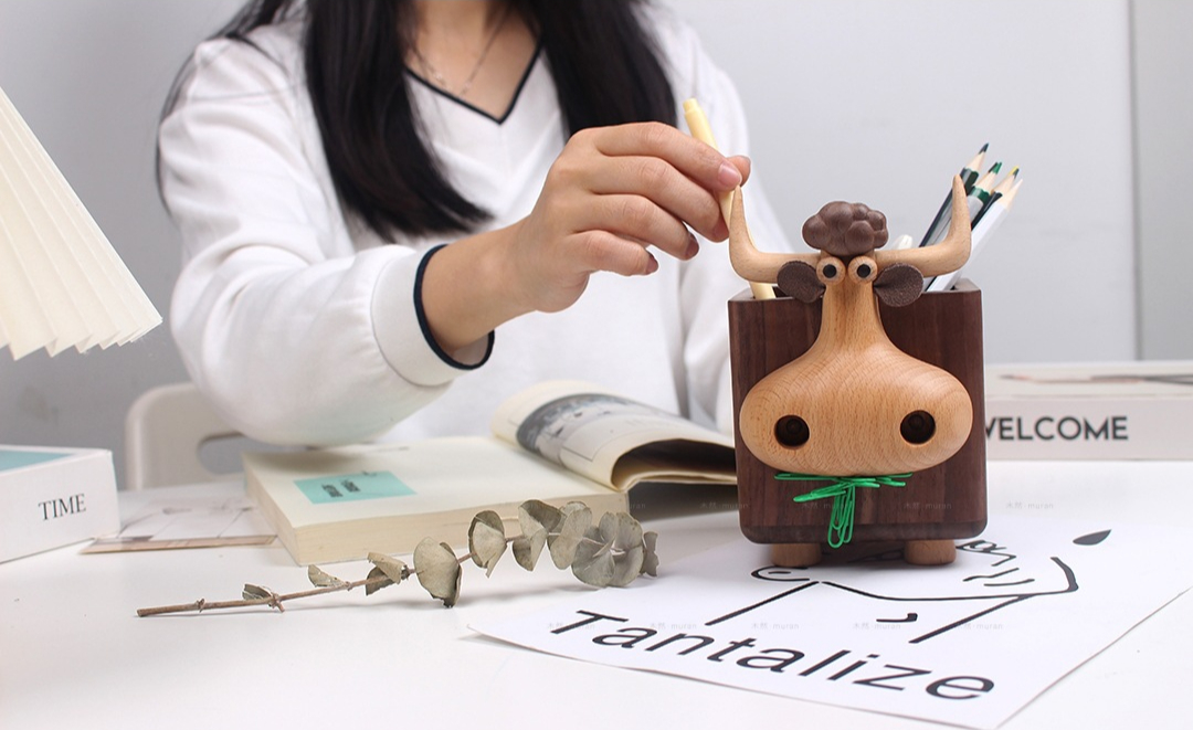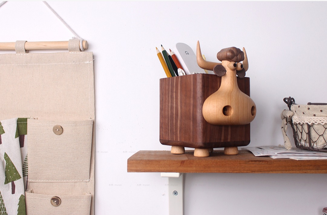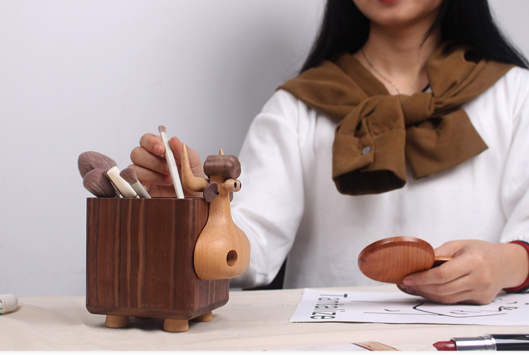 Black walnut calf storage box solid wood large-capacity pen holder creative wooden gift desktop multi-functional ornament