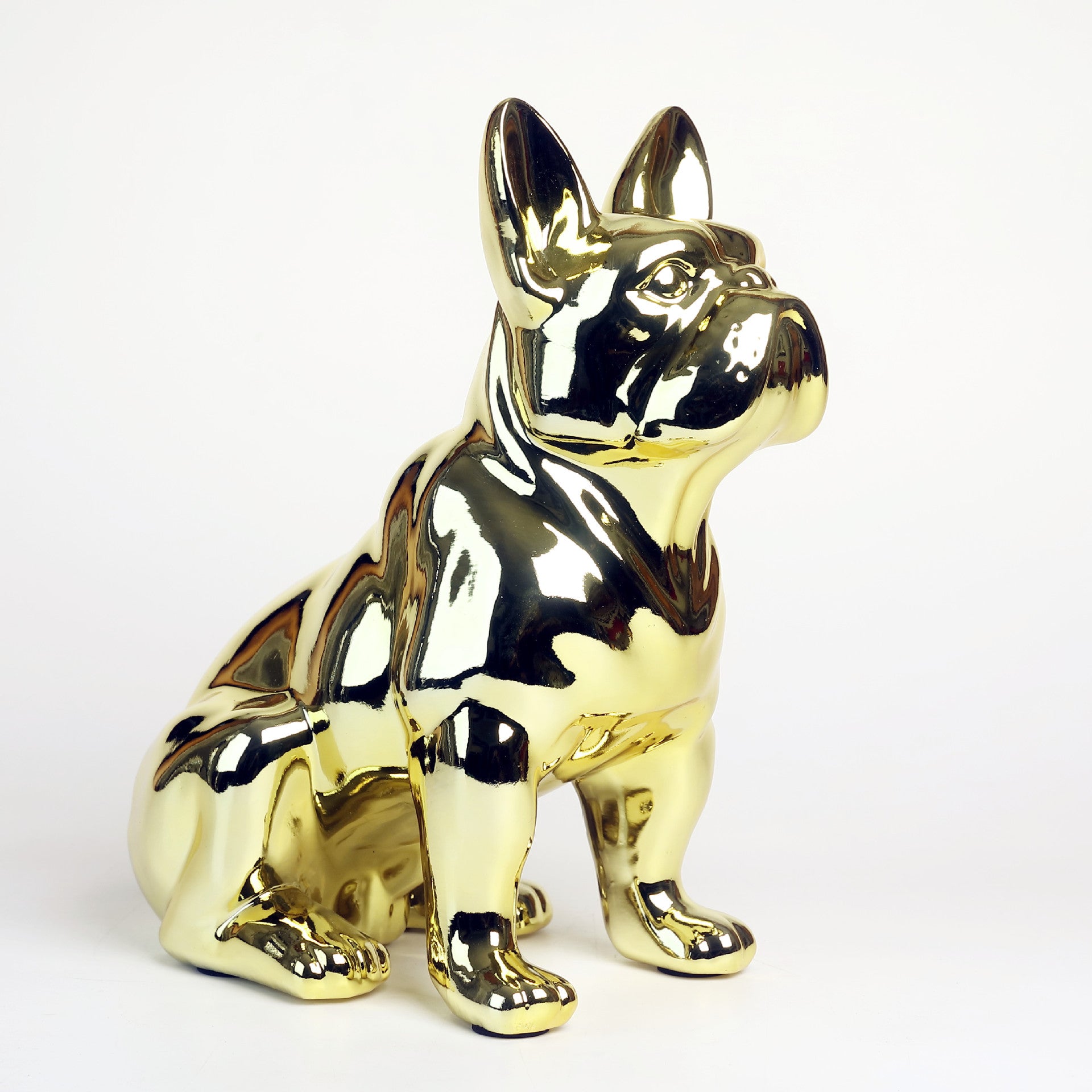 Electroplating French bulldog sculpture Nordic style modern Internet celebrity decoration entrance store lucky ornament