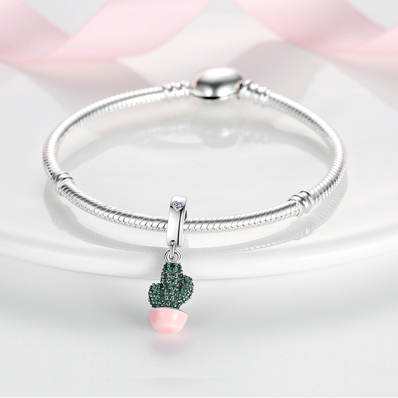 Cactus pendant white copper silver plated pendant Pan family beads DIY bracelet necklace female