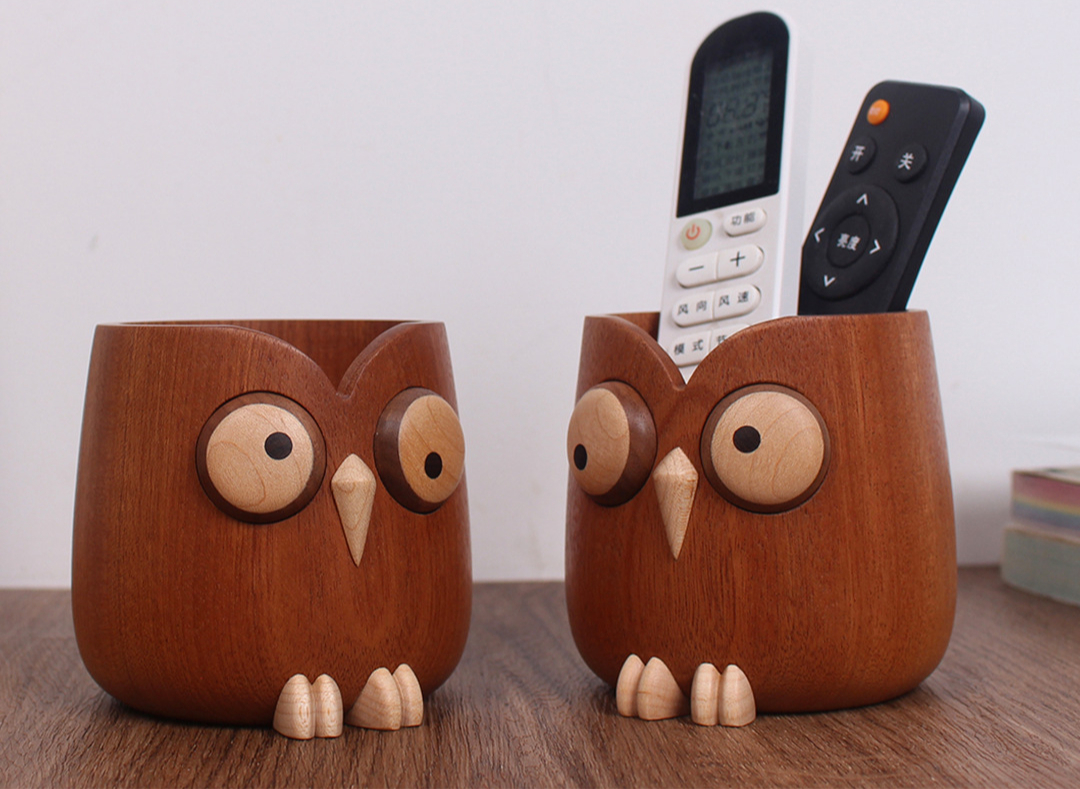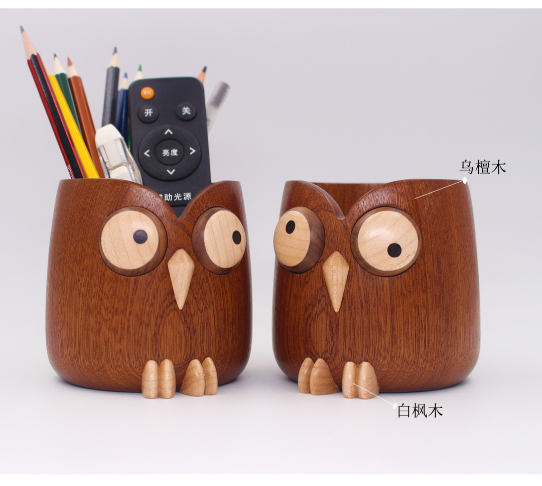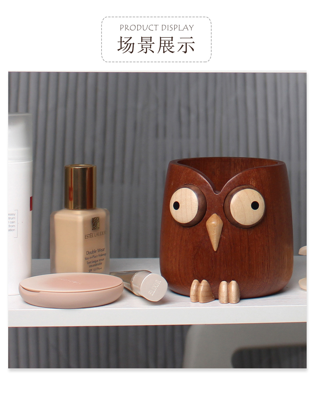 Owl Pen Holder Wooden Pen Holder Makeup Brush Storage Bucket Desktop Ornament Desk Pen Holder Office Stationery Pencil Case