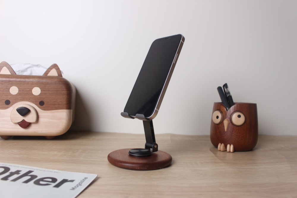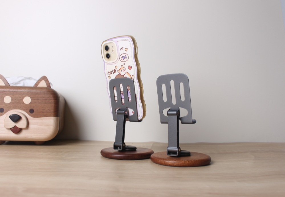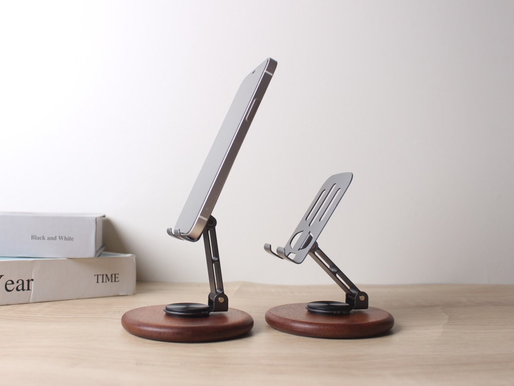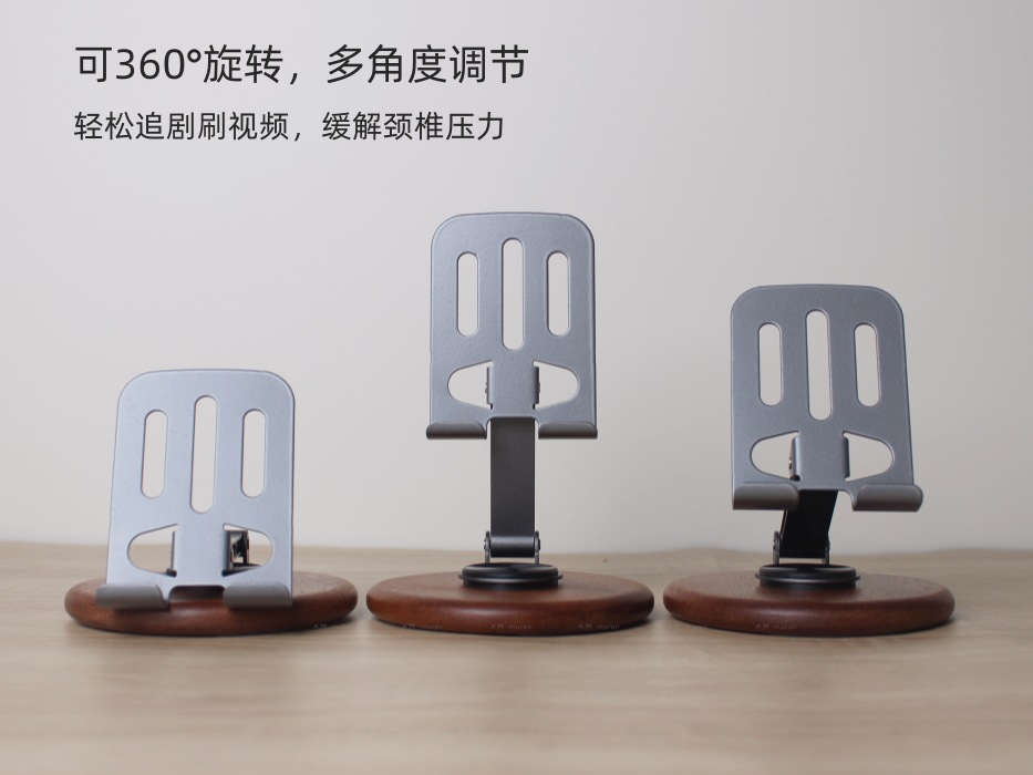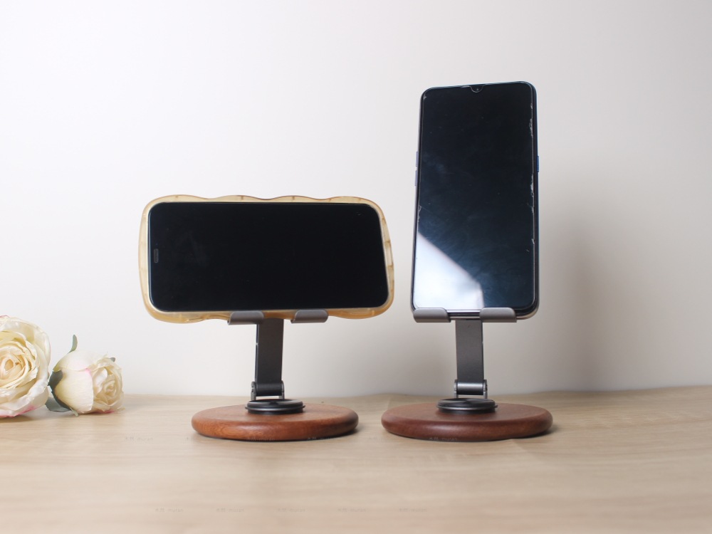 The new solid wood desktop mobile phone holder rotates 360 degrees, and the live broadcast is lazy and convenient to fold. Universal mobile phone holder